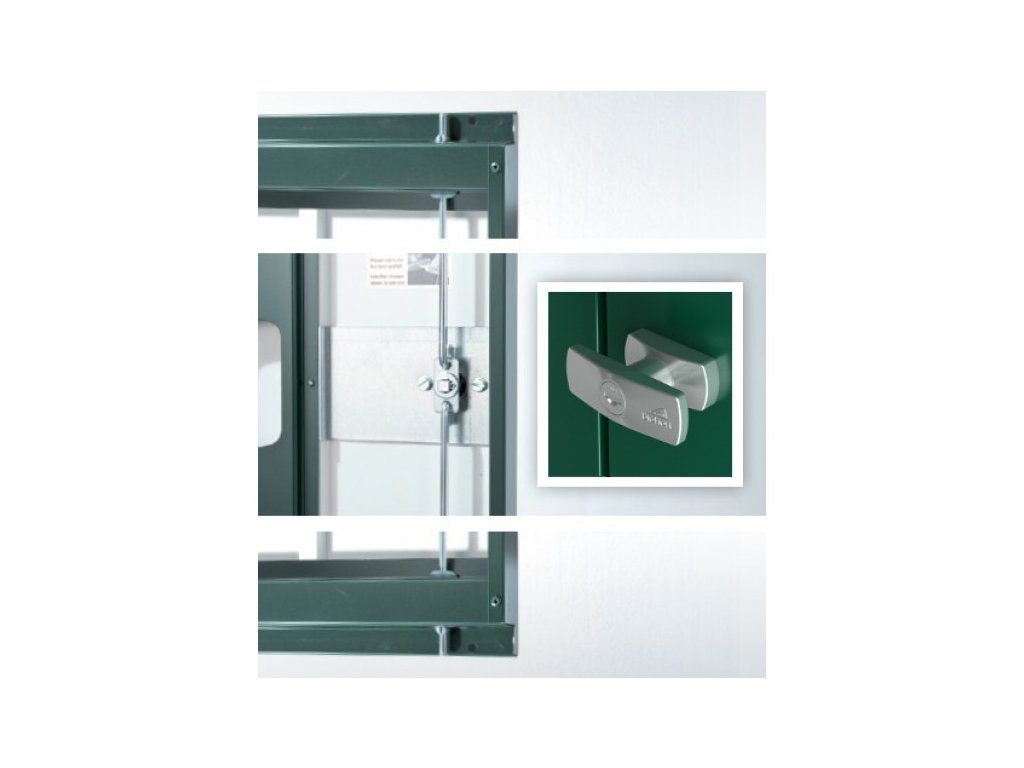 Otočná klika se standardním cylindrickým zámkem s náhradním klíčem a 2 bodovým zajišťovacím mechanismem zabraňuje nežádoucímu vniknutí. Konstrukce dveří je extrémně robustní.