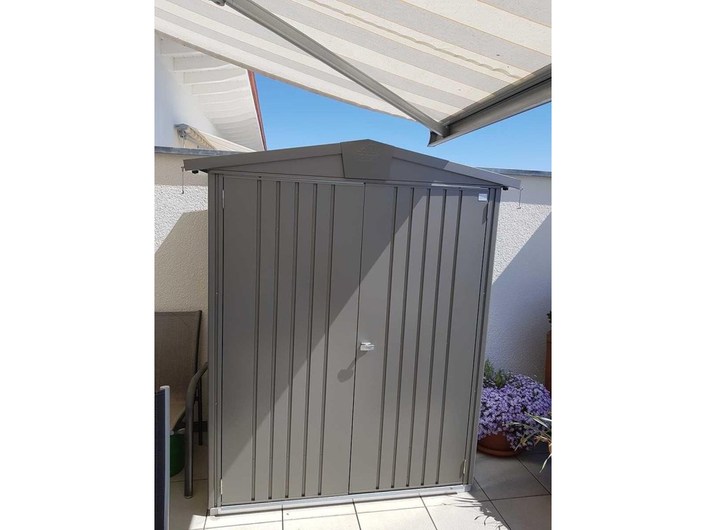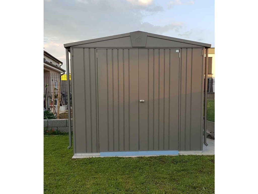 Klasický zahradní kovový domek na nářadí EUROPA® 2 v prémiové kvalitě se sedlovou střechou, v provedení šedá metalíza s dvoukřídlými dveřmi. Vnější rozměry š 172 x d 156 cm. Moderní design, bezpečnost, praktičnost, doživotní bezúdržbovost. Kvalita se zárukou 20 let.