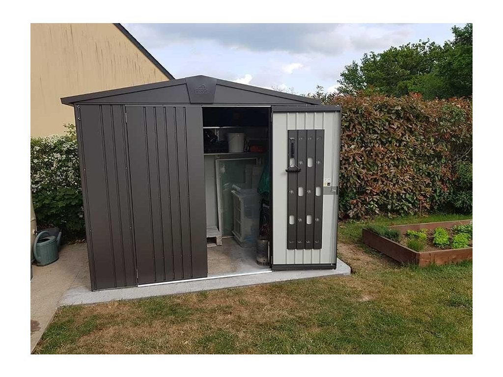 Nemáte kam uskladnit jízdní kola, potřeby k bazénu, zahradní sekačku s nářadím a další věci, které se nevejdou do domu, ale chcete je mít pod střechou a bezpečně pod zámkem? Pořiďte si stylový kovový domek na nářadí Europa 2 prémiové kvality se sedlovou střechou, který vyhovuje i nárokům moderní architektury. Domek je široký 172 cm (přední strana s dveřmi) a 156 cm dlouhý (včetně přesahu střechy). Domky Europa nabízíme ve čtyřech barevných provedeních a devíti velikostech.