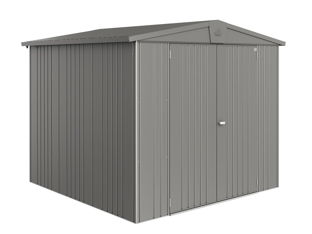 Klasický zahradní kovový domek na nářadí EUROPA® 4 v prémiové kvalitě se sedlovou střechou, v provedení šedý křemen s dvoukřídlými dveřmi. Vnější rozměry š 244 x d 228 cm. Moderní design, bezpečnost, praktičnost, doživotní bezúdržbovost. Kvalita se zárukou 20 let.