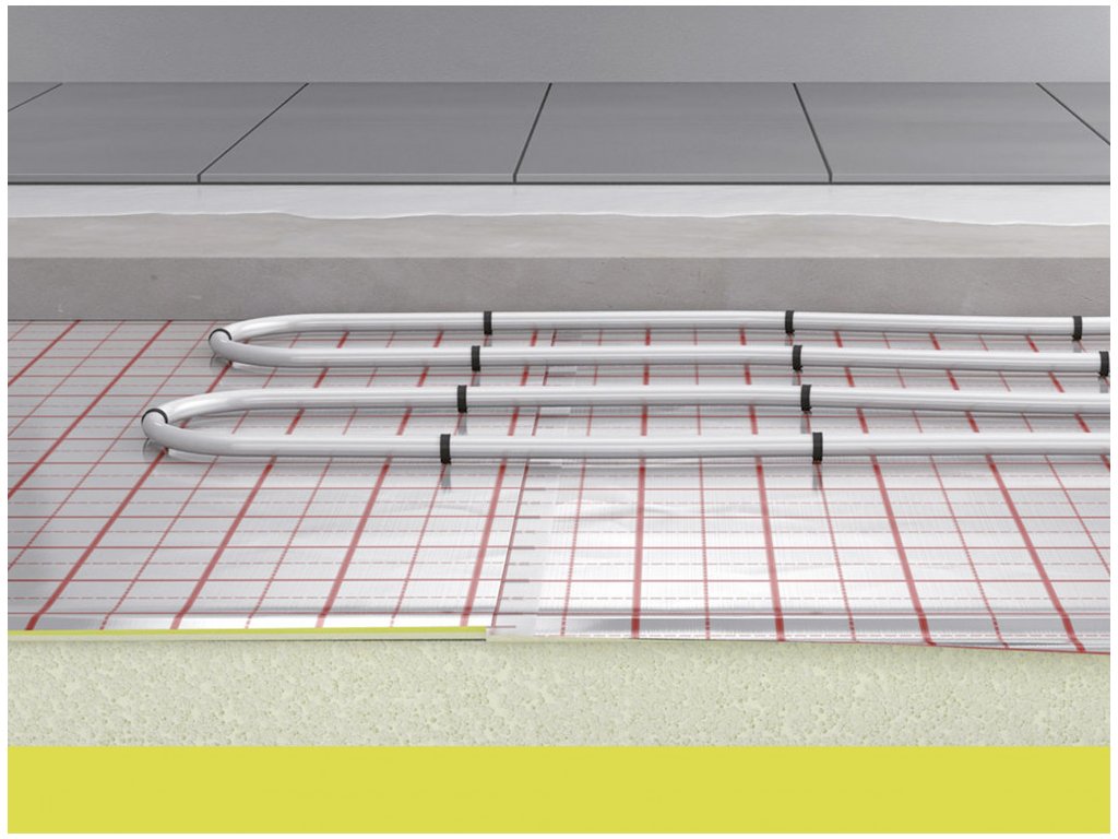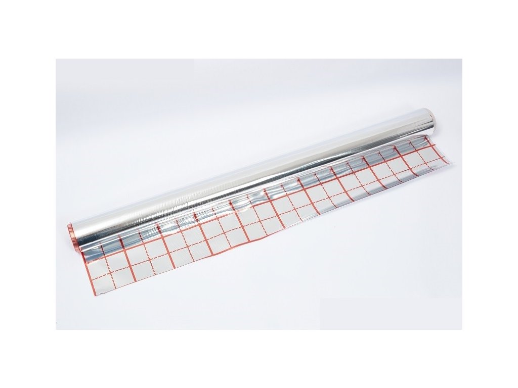 - Fólie je potištěna rastrem s roztečí po 5 cm, což usnadňuje přesné pokládání trubek a zajišťuje rovnoměrné rozložení tepla.