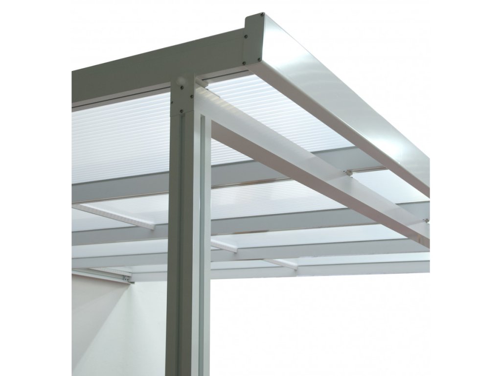 Zastřešení je řešeno čirým akrylovým sklem 16 mm. Akryl je opatřen jednostrannou UV ochranou. To vše zaručuje vysokou odolnost proti nepříznivému počasí. Akrylové sklo splňuje veškeré podmínky pro udělení atestace zdravotní nezávadnosti toxikologickým centrem, vydaným státním zdravotním ústavem. Pergola dále nabízí možnost variabilního nastavení sklonu střechy od 5° do 20°. Pro zvýšení komfortu při pobytu pod pergolou lze dokoupitefektivní zastínění ve čtyřech barevných variantách a třech hloubkách.
