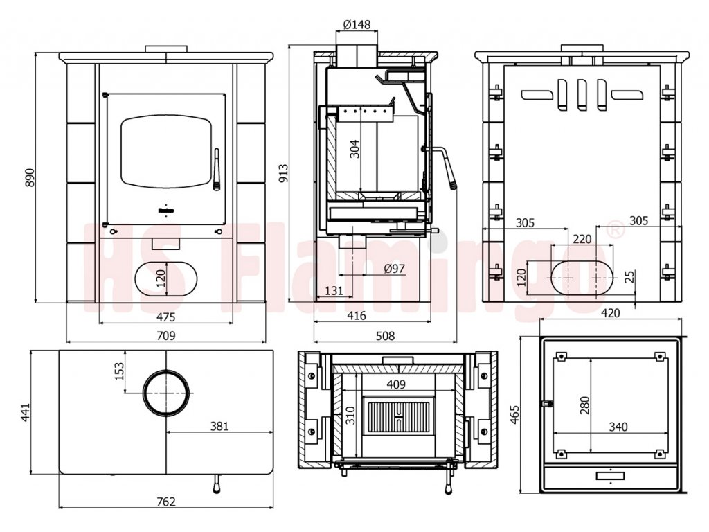 | Rozměry topeniště (Š x H x V): | 405 x 310 x 280 mm |