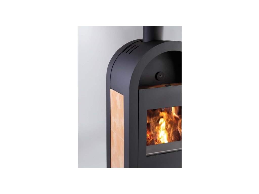 Uchvátí vás svým luxusním provedením a většími skleněnými dvířky ze speciální sklo-keramické hmoty s vysokou tepelnou odolností, které zaručují nádherný zážitek z pohledu na plápolající oheň. Pod prosklenou částí kamen najdete prostor určený pro skladování dřeva, či dřevěných briket.