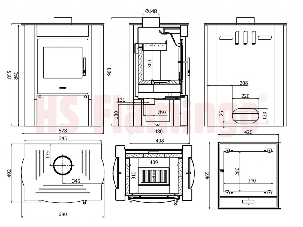 | Rozměry topeniště (Š x H x V): | 405 x 310 x 280 mm |