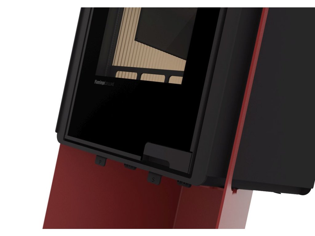 Krbová kamna FLAMINGO DELUXE ® PULAU s jmenovitým výkonem 9 kW v červené barvě, mají mnoho nadstandardních doplňků. Inovativní prvky směřují především ke zlepšení obsluhy krbových kamen. Tato nadčasová kamna jsou moderní, účinná a s designem, který jinde nenajdete.