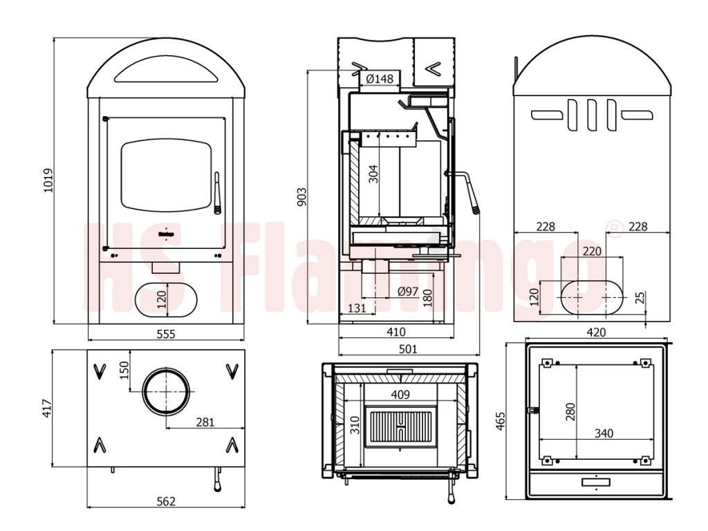 | Rozměry topeniště (Š x H x V): | 405 x 310 x 280 mm |