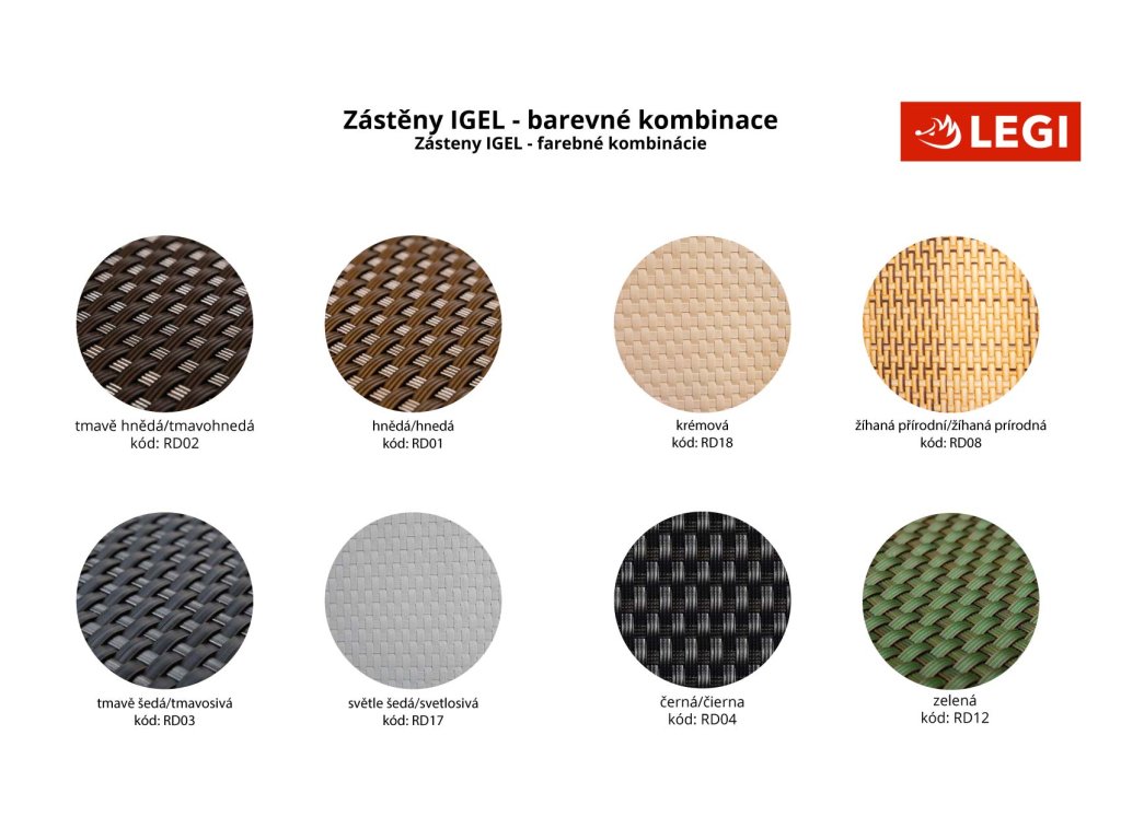 Materiál umožňuje vybrat si ze široké škály barevných odstínů rohože, který stylově doplní váš dům či zahradu. Barevné kombinace rohoží naleznete na obrázku níže.