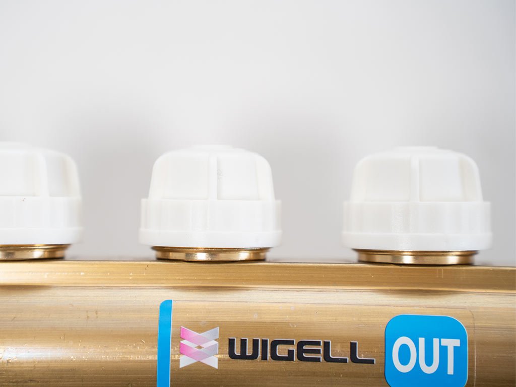 Rozdělovače Wigell lze namontovat přímo na stěnu nebo pomocí dodaných držáků do skříně rozdělovače. Montážní poloha je libovolná. Na tento rozdělovač můžete pomocí svěrného šroubení připojit trubky PeX-AL-PeX nebo Pe-rt.