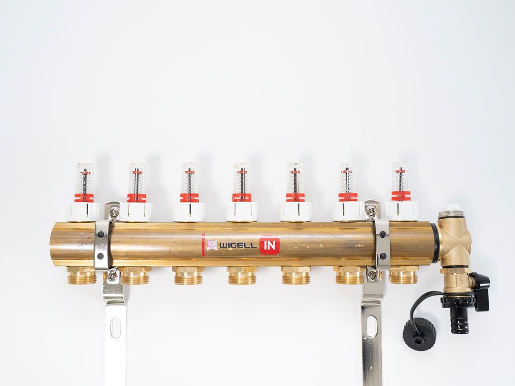 PROFI mosazný rozdělovač se 7 okruhy a manuálním odvzdušňovačem je určený pro podlahové vytápění. Všechny rozdělovače mají provedenou tlakovou zkoušku. Součástí rozdělovače jsou průtokoměry, odvzdušňovače a regulační ventily. Rozdělovače jsou osazeny 1" kulovými kohouty se šroubením a vnitřním závitem pro připojení.