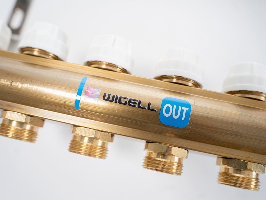 Rozdělovače Wigell lze namontovat přímo na stěnu nebo pomocí dodaných držáků do skříně rozdělovače. Montážní poloha je libovolná. Na tento rozdělovač můžete pomocí svěrného šroubení připojit trubky PeX-AL-PeX nebo Pe-rt.