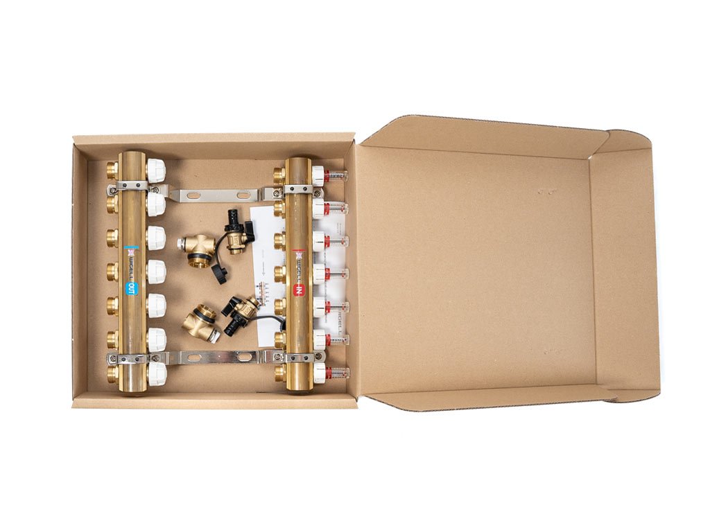 Rozdělovač pro podlahové topení je hlavním komponentem pro rovnoměrné rozdělení tepla v podlahových topných systémech. Varianty rozdělovačů zahrnují různé počty okruhů, obvykle od 2 do 18, a jsou kompatibilní s podlahovým topením v průměrech trubky 16–20 mm.