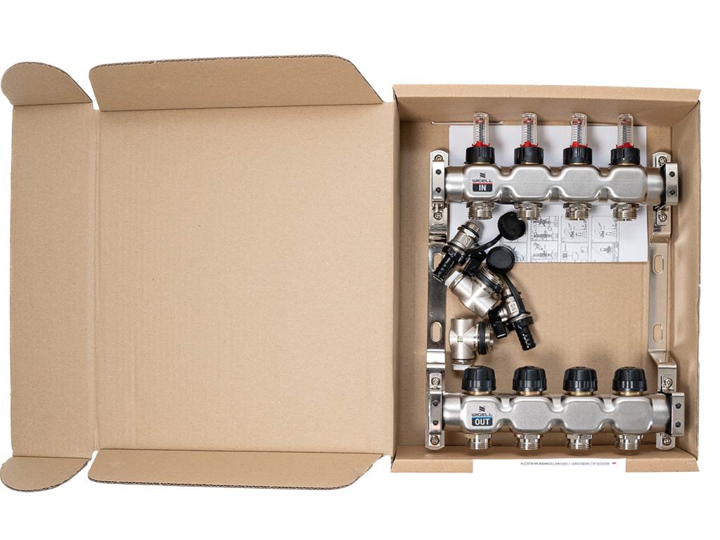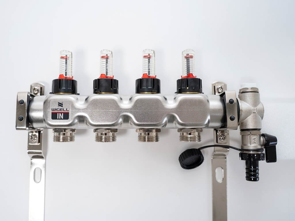 PROFI nerezový rozdělovač se 4 okruhy a manuálním odvzdušňovačem je určený pro podlahové vytápění. Všechny rozdělovače mají provedenou tlakovou zkoušku. Součástí rozdělovače jsou průtokoměry, odvzdušňovače a regulační ventily. Rozdělovače jsou osazeny 1" kulovými kohouty se šroubením a vnitřním závitem pro připojení.