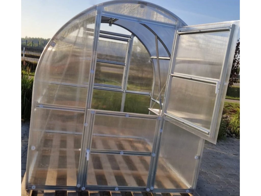 Zahradní skleník z polykarbonátu Gardentec Slim je novým přírůstkem mezi oblíbené obloukové skleníky. Konstrukce skleníku je vyrobena z žárově pozinkovaných profilů o síle 1 mm a splňuje obzvláště vysoké požadavky na kvalitu a odolnost. Opláštění skleníku je tvořeno 4 mm vysokogramážním dutinkovým polykarbonátem s jednostrannou UV ochranou, který má zvýšené tepelně izolační vlastnosti.