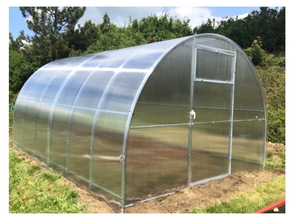 Zasklení skleníku je tvořeno čirým dutinkovým (komůrkovým) polykarbonátem o tloušťce 4 mm s UV ochranou díky které nekřehne a nežloutne. Polykarbonát je certifikovaný a splňuje veškeré podmínky zdravotní nezávadnosti.