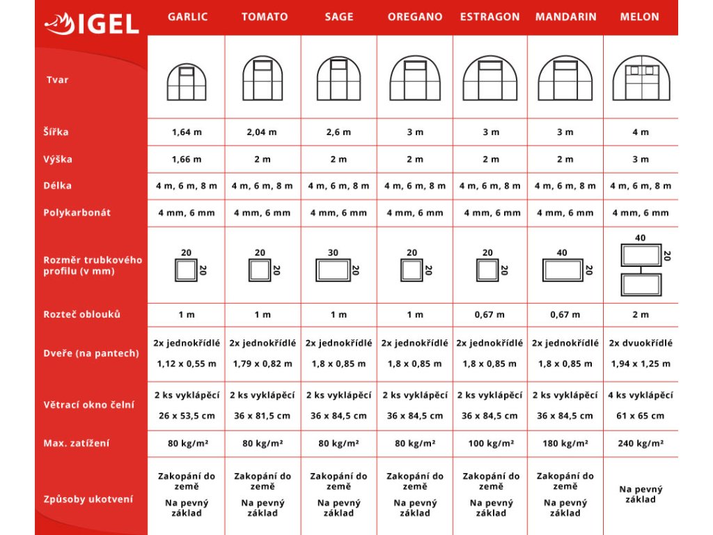 - Nabídku skleníků LEGI s jeklovou pozinkovanou konstrukcí, včetně oblíbených skleníků OREGANO, ESTRAGON, TOMATO a dalších