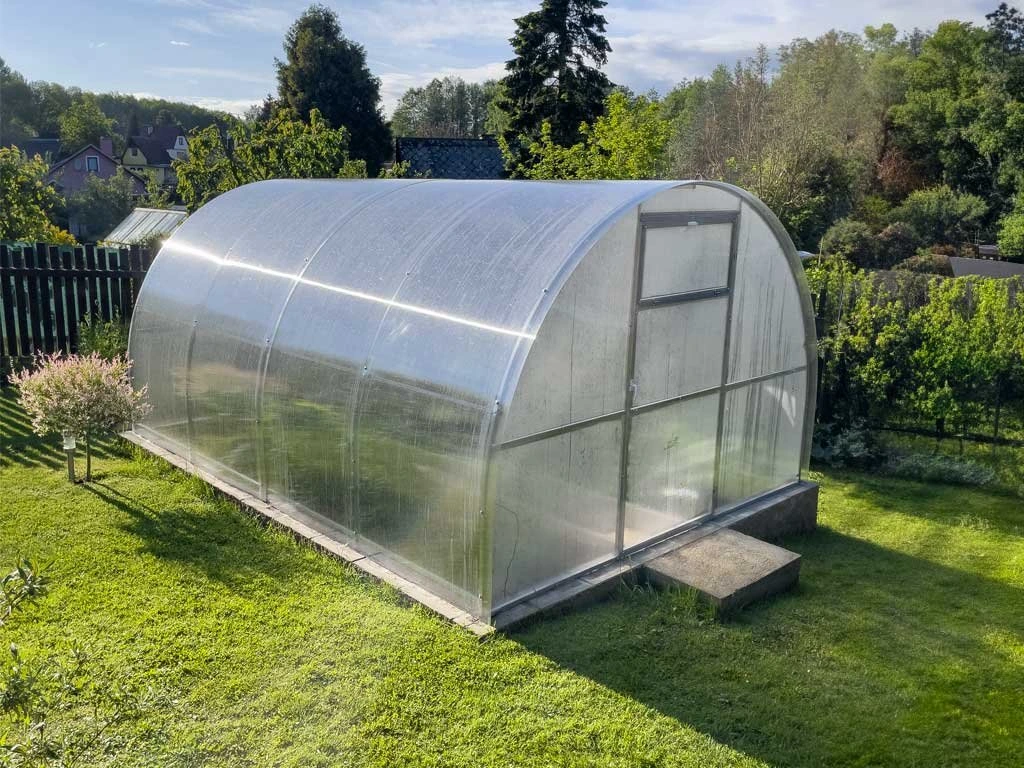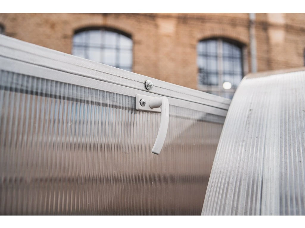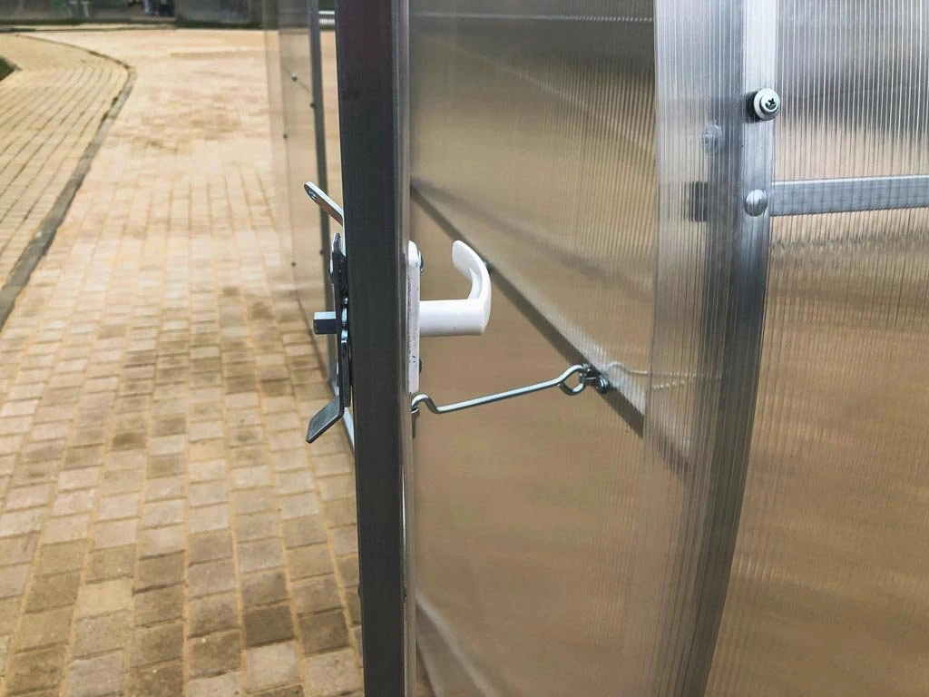 Zasklení skleníku je tvořeno čirým dutinkovým (komůrkovým) polykarbonátem o tloušťce 6 mm s UV ochranou díky které nekřehne a nežloutne. Polykarbonát je certifikovaný a splňuje veškeré podmínky zdravotní nezávadnosti.