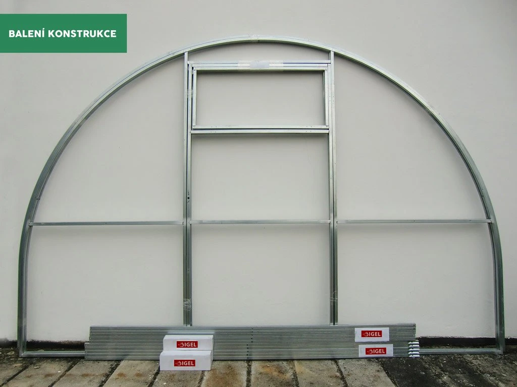Každá zásilka se skládá z krabice s materiálem, balení profilů a příslušného počtu polykarbonátových desek o rozměru 6 × 2,1 m. Jeden kus desky je vždy použit pro nařezání čelních dílů, další desky se neřežou - jsou určeny k zakrytí oblouků.