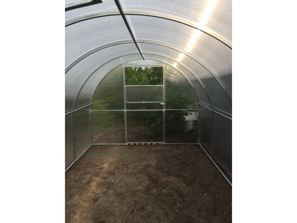 Zasklení skleníku je tvořeno čirým dutinkovým (komůrkovým) polykarbonátem o tloušťce 6 mm s UV ochranou díky které nekřehne a nežloutne. Polykarbonát je certifikovaný a splňuje veškeré podmínky zdravotní nezávadnosti.