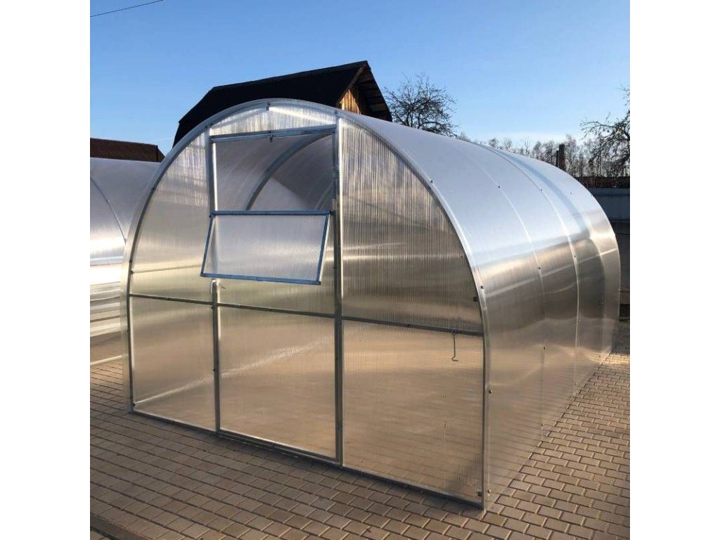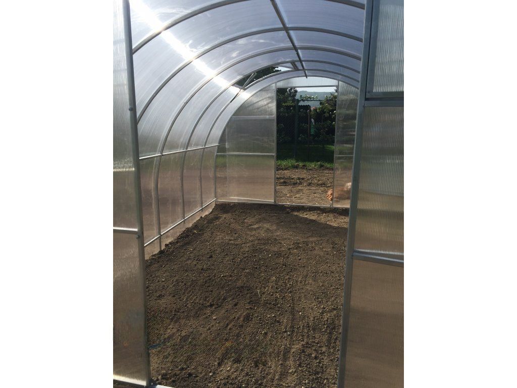 Zasklení skleníku je tvořeno čirým dutinkovým (komůrkovým) polykarbonátem o tloušťce 6 mm s UV ochranou díky které nekřehne a nežloutne. Polykarbonát je certifikovaný a splňuje veškeré podmínky zdravotní nezávadnosti.