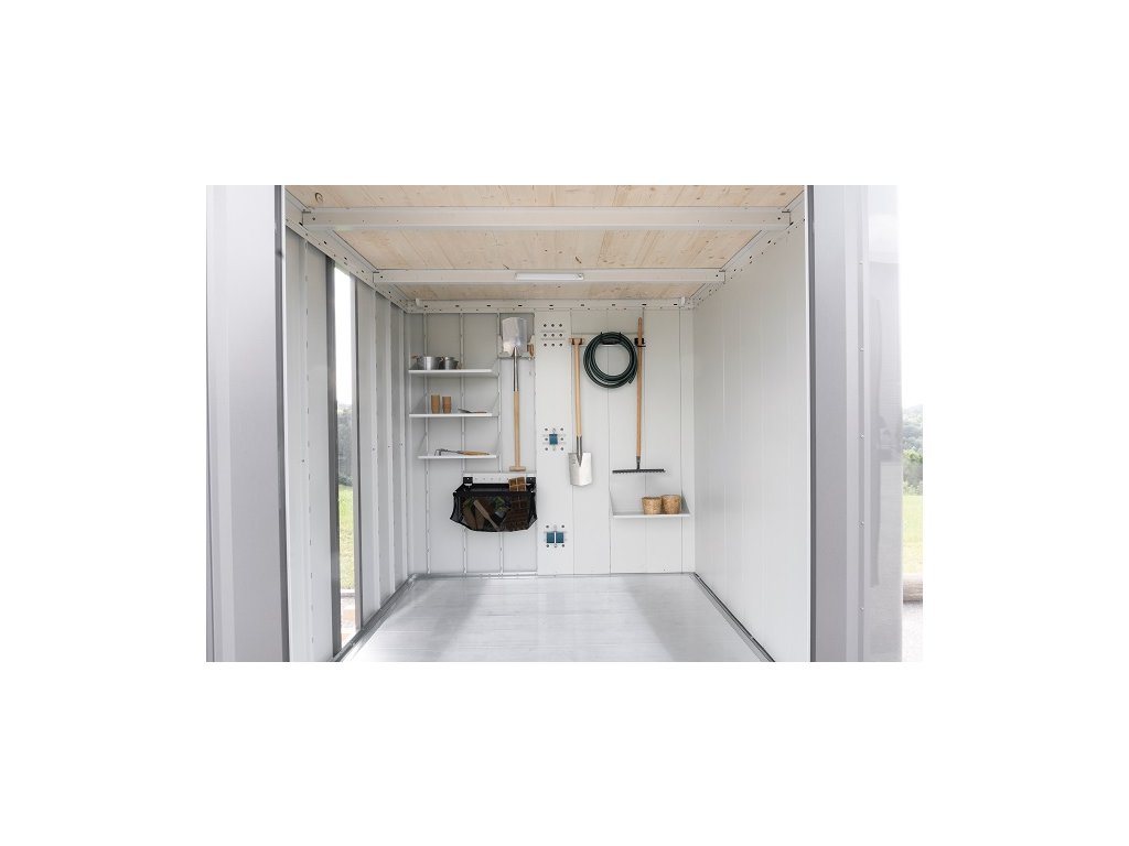 Použité materiály jsou to nejlepší, co lze získat - pozinkovaný ocelový plech s polyamidovým povrchem, šrouby a panty vyrobené z nerezové oceli. Domek je bezúdržbový a je na něj poskytována záruka 20 let. Dveře se pohodlně otevírají pomocí plynové pružiny a můžete si vybrat volitelné vnitřní obložení a izolaci, což vám umožní ještě lepší využití.