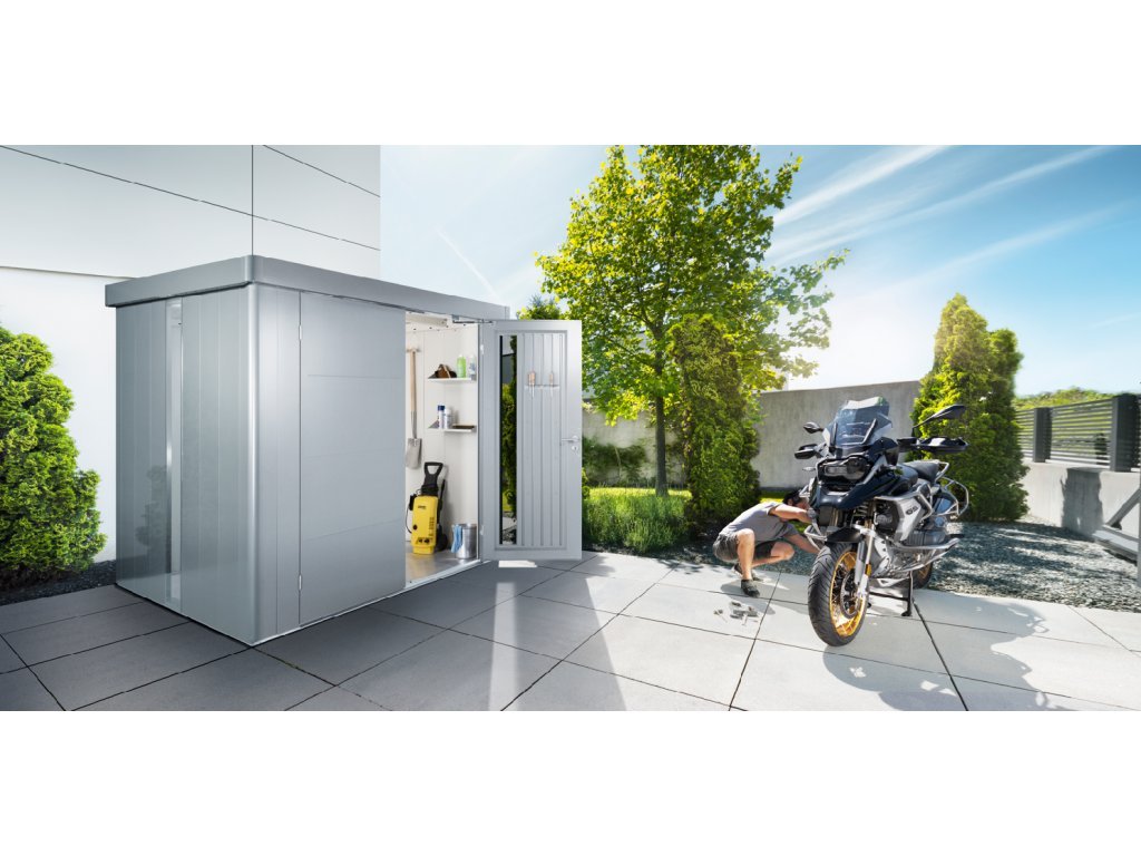 Domek NEO od Biohortu je kombinací stylu, funkčnosti, kvality a bezpečnosti. Je perfektním řešení pro uskladnění vašeho zahradního náčiní a kol, které se stane také nádherným designovým prvkem na vaší zahradě. Jeho hladké boční stěny a skleněné dveře mu dodávají moderní vzhled. Vybírat můžete až z devíti barevných variant a 16 různých rozměrů.