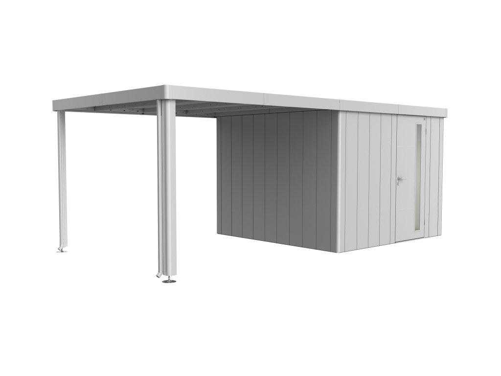 Boční stěna k přístřešku u zahradního domku Neo 3A/3B/3C/3D, stříbrná barva.