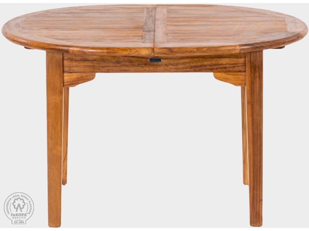 Oválný rozkládací stůl Elegante o rozměrech 120 x 130-180 cm a výšce 78 cmje vyroben z kvalitního indonéského teaku. Stůl má špičkově provedené spoje, švédská nerezová spona, fixace jednotlivých lamel a rybinový zámek zajišťují maximální stabilitu. Deska zahradního stolu má tloušťku 3,5 cm. Nohy stolu jsou chráněny plastovými krytkami. Otvor pro slunečník je zakryt mosaznou zátkou. Stůl je možné ze základního rozměru 130 cm zvětšit až na rozměr 180 cm.