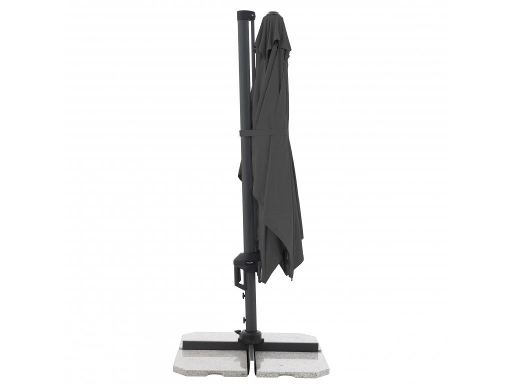 Obdélníkový otáčivý slunečník Doppler o rozměrech 310 x 210 cm s boční tyčí, nastavitelnou výškou a hliníkovou konstrukcí. Snadné a pohodlné otevření a zavření slunečníku díky kličkovému mechanismu v antracitové barvě.