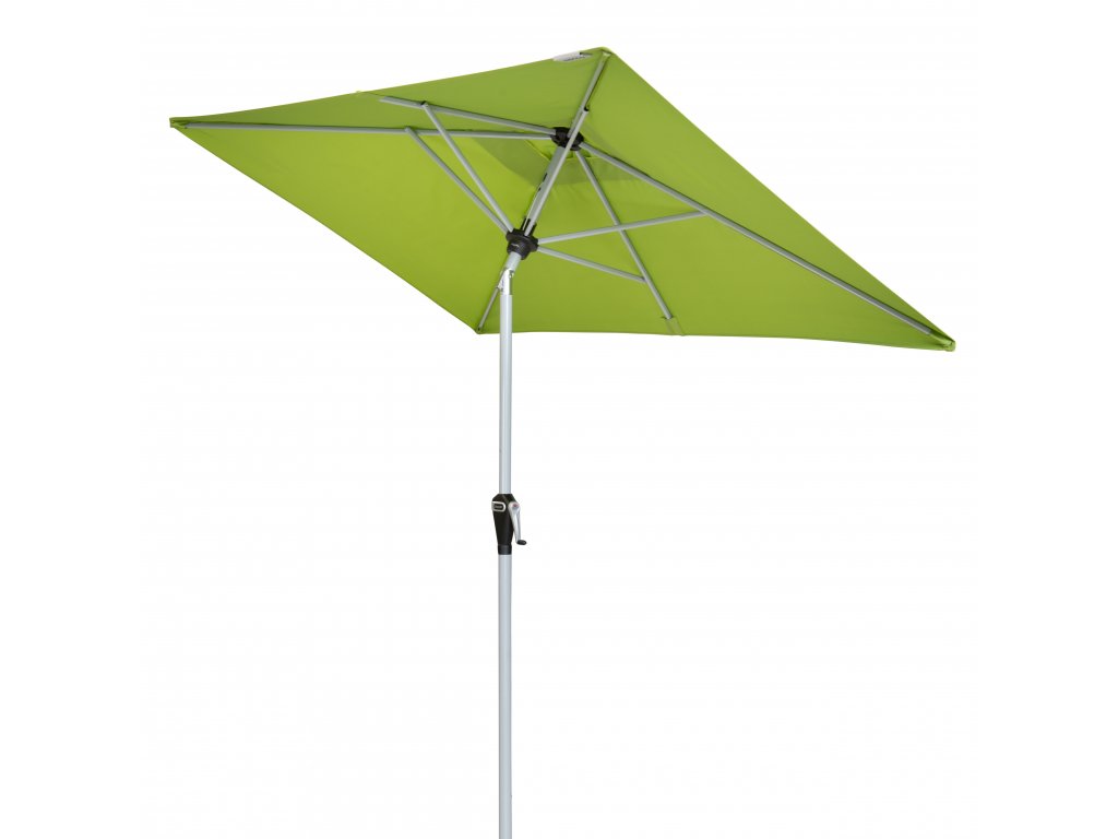 Obdélníkový slunečník Doppler o rozměru 210 x 140 cm s automatickým naklápěním. Otočný, tyč uprostřed, výškově nastavitelný, hliníková konstrukce. Barva zelená.