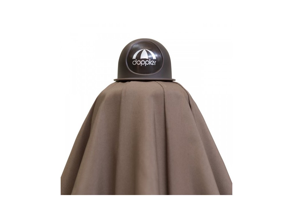 Obdélníkový slunečník Doppler Alu Wood s ultra UV ochranou o rozměru 300 x 200 cm s automatickým naklápěním. Otočný, tyč uprostřed, výškově nastavitelný, hliníková konstrukce. Barva hnědá.