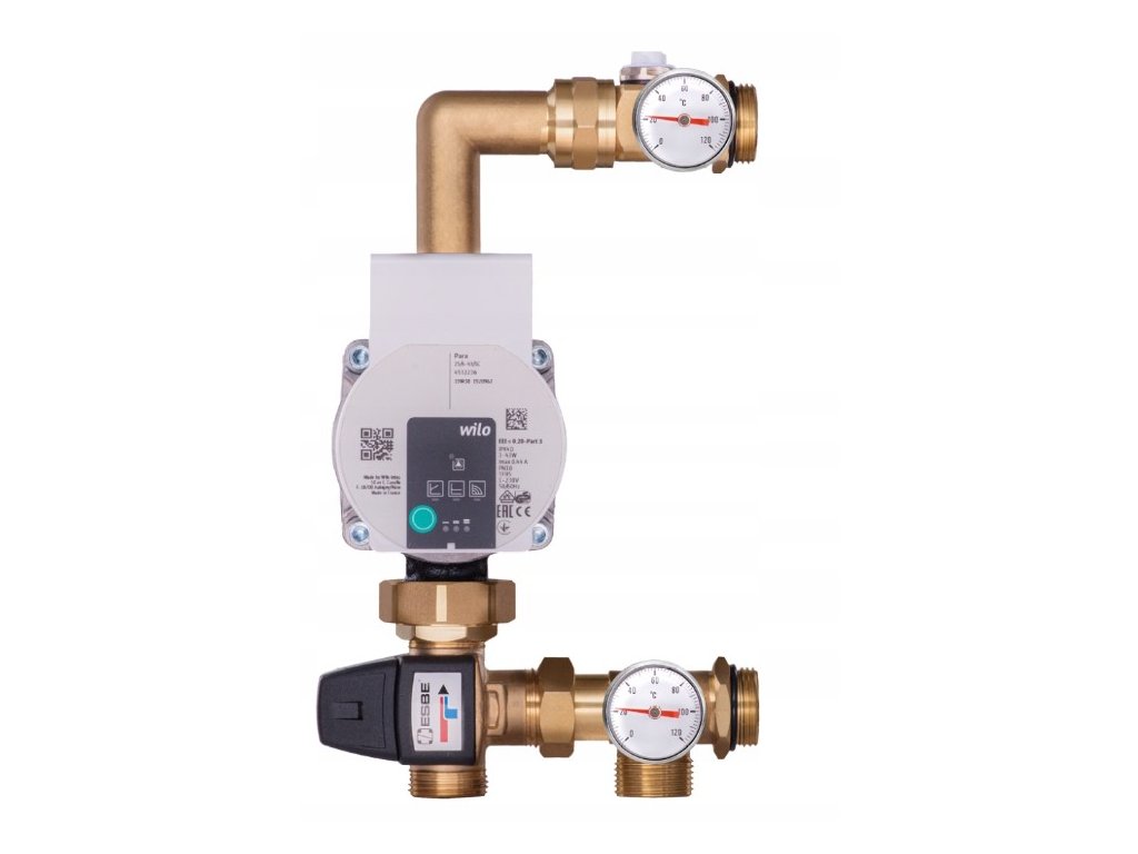 Kulový ventil červený mosazný 1" přímý se šroubením k rozdělovači. Balení obsahuje 2 červené kulové ventily . Teploměr není součástí balení.