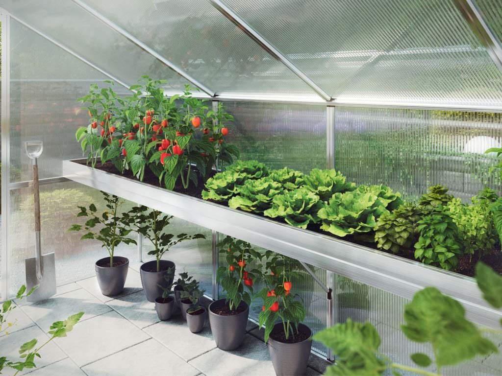 Praktický podnos na rostliny KGT je vyroben z vysoce kvalitního hliníku a vede podél celé boční stěny skleníku. Vysoce odolné plastové vložky lze jednotlivě vyjmout a snadno vyčistit. Díky inteligentnímu upevnění ke skleníku vydrží všechny nosné komponenty vysoké zatížení. Hloubka podnosu je přibližně 63,5 cm. Podnos na rostliny má také okr