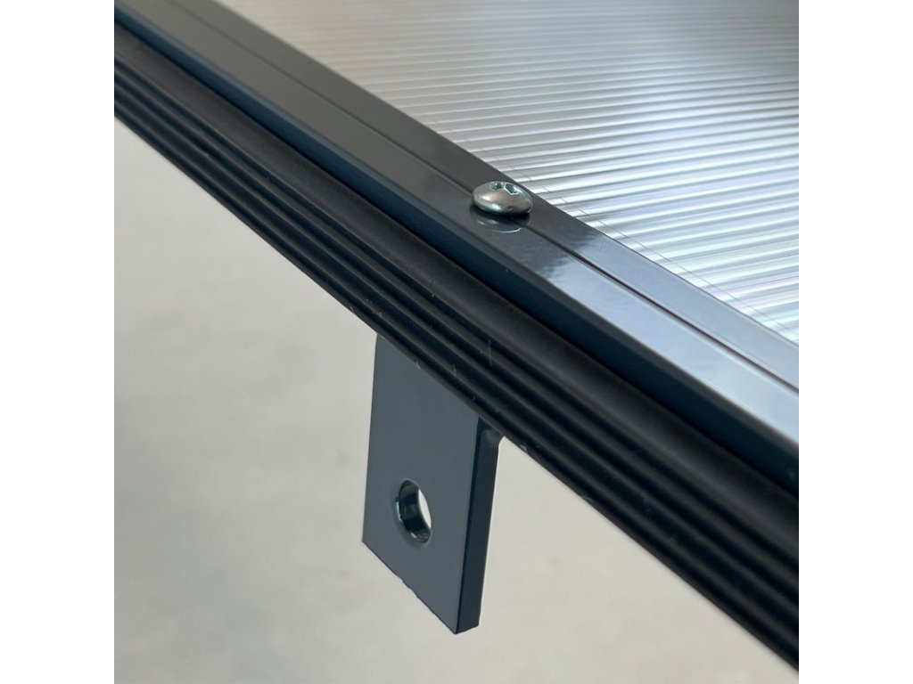 Vchodová stříška je dodávána rozložená a je ji třeba před osazením sestavit. Polykarbonát je již nařezaný na přesný rozměr. K sestavení vchodové stříšky stačí pouze křížový šroubovák a nezabere déle než 10 minut.