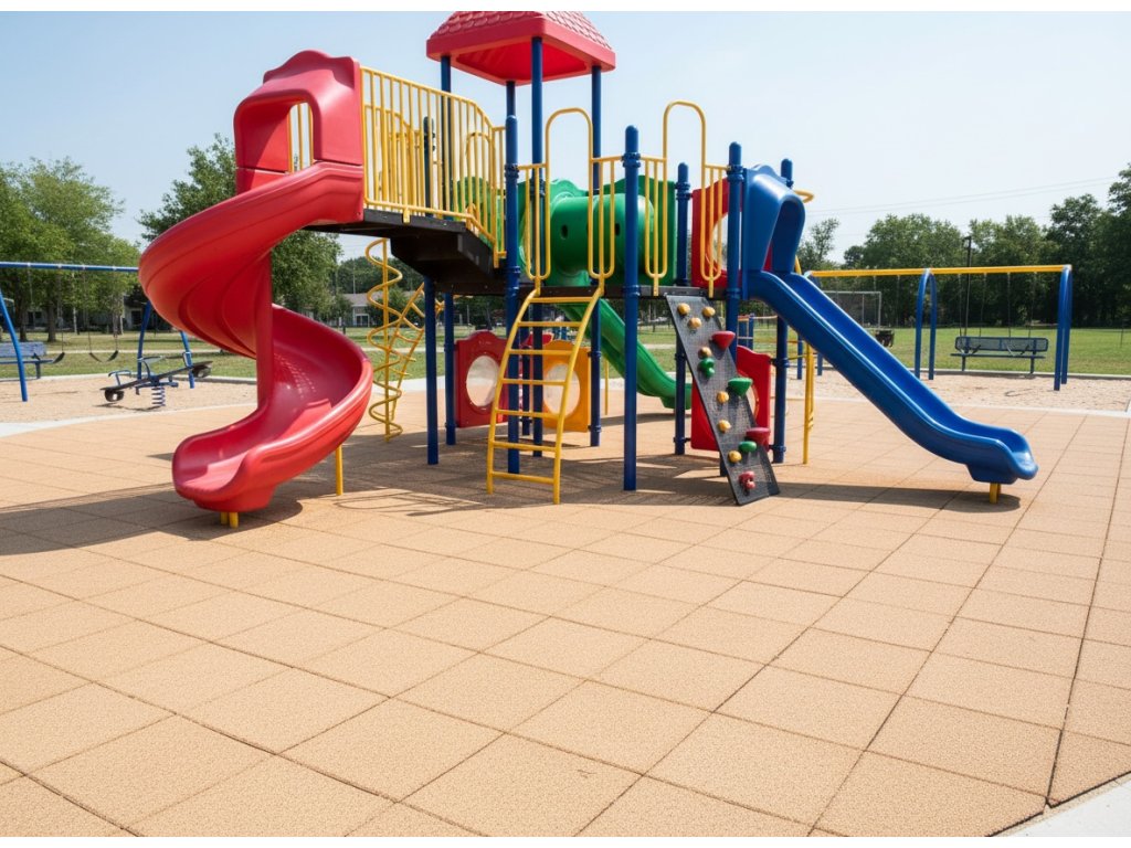 - Materiál: Gumová dlaždice s vrstvou umělého trávníku