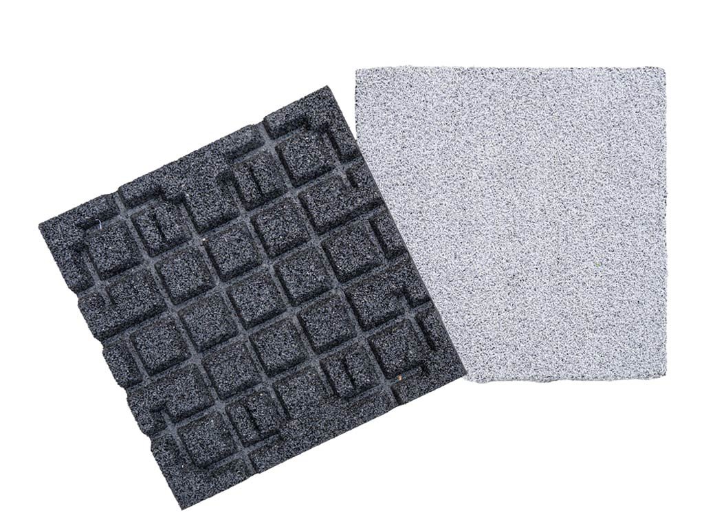 - Spodní strana: Gumová protiskluzová dlaždice s nopkovou strukturou