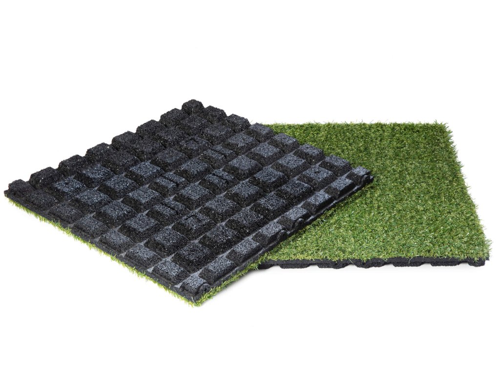 - Materiál: Gumová dlaždice s vrstvou umělého trávníku