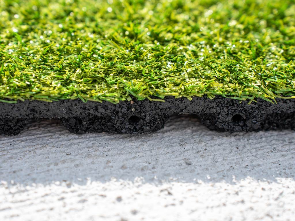 - Materiál: Gumová dlaždice s vrstvou umělého trávníku