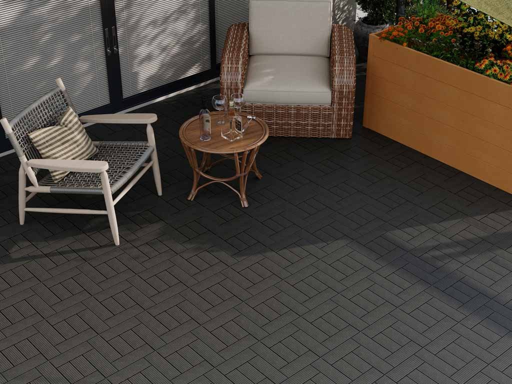 WPC dlaždice LEGI Style v barvě černá jsou součástí komplexního podlahového systému LEGI a je vhodné je použít jako exteriérovou podlahovou krytinu. Mají velmi snadnou a rychlou montáž i demontáž. Rozměr dlaždice Style je 2,0 x 30 x 30 cm.