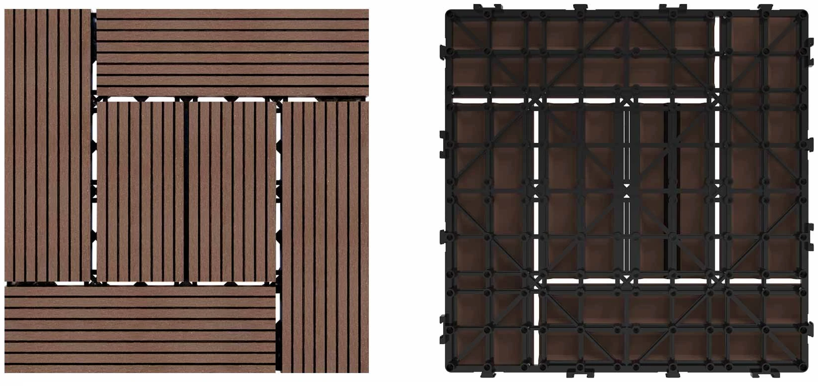WPC dlaždice LEGI Style v barvě tmavě hnědá jsou součástí komplexního podlahového systému LEGI a je vhodné je použít jako exteriérovou podlahovou krytinu. Mají velmi snadnou a rychlou montáž i demontáž. Rozměr dlaždice Style je 2,0 x 30 x 30 cm.