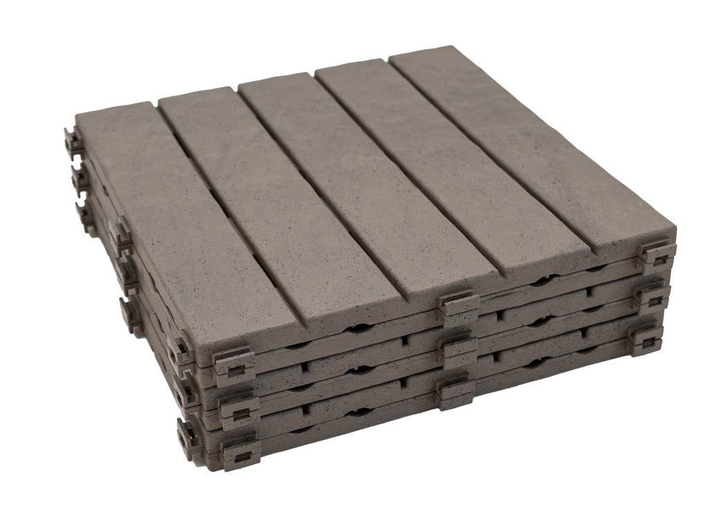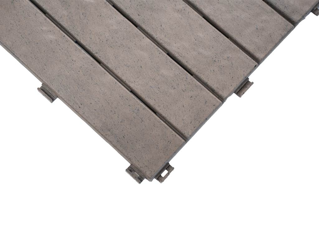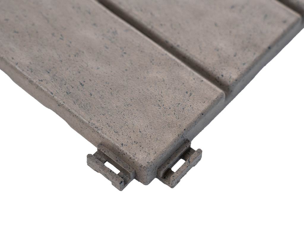 Podlahu můžete mít položenou během pár hodin nebo za jedno odpoledne - záleží na velikosti prostoru, kam dlažbu budete pokládat. Dlaždice mají praktické drážky, které slouží pro odtok přebytečné vody. Díky tomu se voda neshromažďuje mezi dlažbou a podkladem a nevznikne plíseň. Rovné dosedací plochy zespodu dlaždice neponičí hydroizolaci na vaší terase. Mezi izolaci a dlažbu nemusíte vkládat další tkaninu. Dlažba se upevňuje pomocí bočních spojovacích háčků, tzv. systémem Quick - Click. Na jednoduchou montáž se můžete podívat na tomto odkazu.