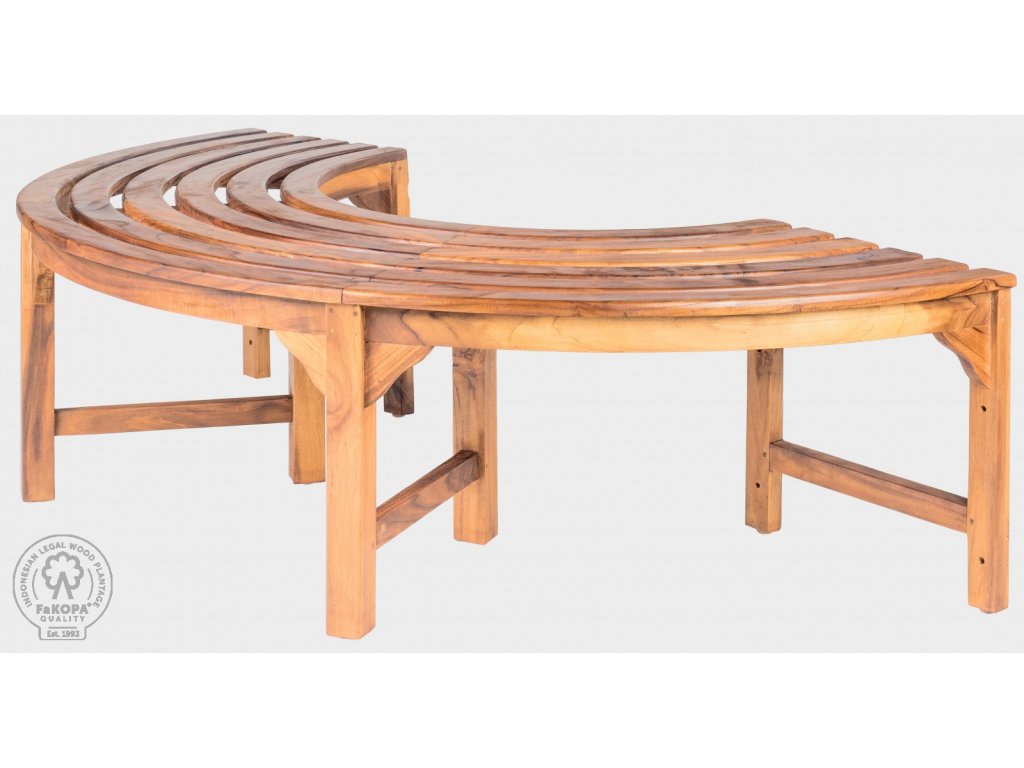 Výborně zpracovaná zahradní lavice Agneso rozměrech 168 x 84 cm a výšce 46 cm v provedení bez zad je vhodná jako lavička kolem stromů. Díky použití truhlářských čepů, dlabů a kolíků, je tato nádherná lavice pevná a stabilní. Vnitřní průměr lavičky je 78 cm. Celý kruh kolem stromu vytvoří dva kusy. Lavice je ošetřena teakovým olejem.