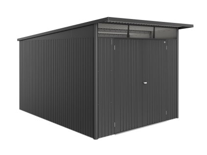 Stabilní kovový domek na nářadí AVANTGARDE ECO A8 v prémiové kvalitě s pultovou střechou, v provedení tmavě šedá metalíza s dvoukřídlými dveřmi. Vnější rozměry š...
