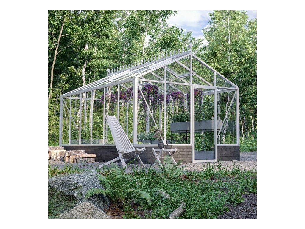 Základ skleníku tvoří lehká, ale pevná a propracovaná konstrukce z hliníkových profilů, které jsou přirozeně odolné vůči korozi, dlouhodobě nenáročné na údržbu a dobře snášejí běžné venkovní podmínky. Hliník zároveň umožňuje přesné lícování dílů, volbu různých typů zasklení a přizpůsobení konstrukce i vzhledu podle individuálních potřeb. Výsledkem je stabilní a prvotřídní provedení, doložené 12letou zárukou na hliníkový rám, použitím systémových extrudovaných profilů a integrovaným okapovým systémem, který zvyšuje tuhost celé konstrukce.
