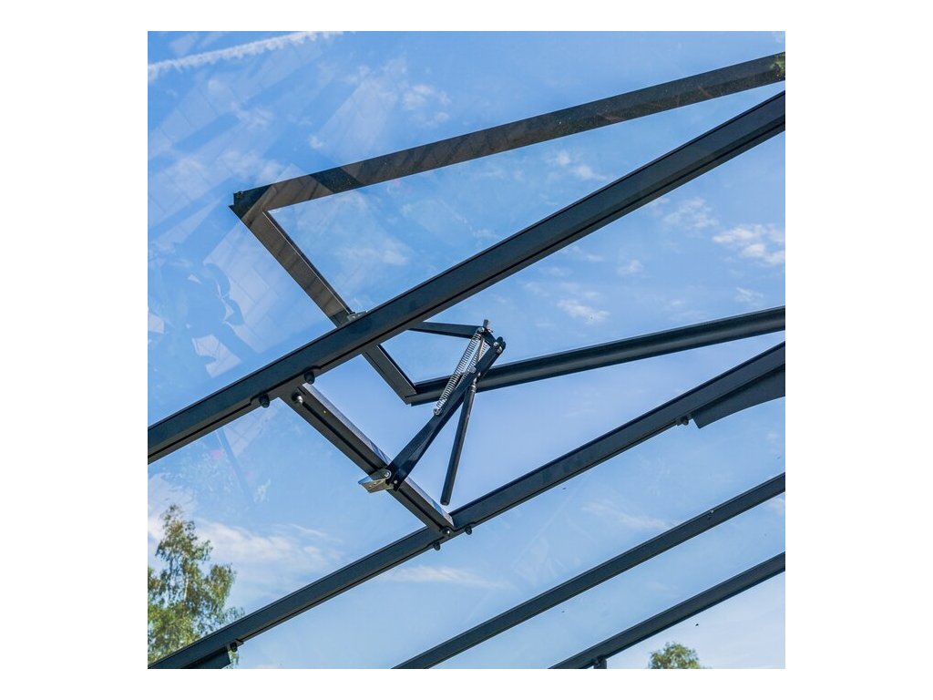 Základ skleníku tvoří lehká, ale pevná a propracovaná konstrukce z hliníkových profilů, které jsou přirozeně odolné vůči korozi, dlouhodobě nenáročné na údržbu a dobře snášejí běžné venkovní podmínky. Hliník zároveň umožňuje přesné lícování dílů, volbu různých typů zasklení a přizpůsobení konstrukce i vzhledu podle individuálních potřeb. Výsledkem je stabilní a prvotřídní provedení, doložené 12letou zárukou na hliníkový rám, použitím systémových extrudovaných profilů a integrovaným okapovým systémem, který zvyšuje tuhost celé konstrukce.