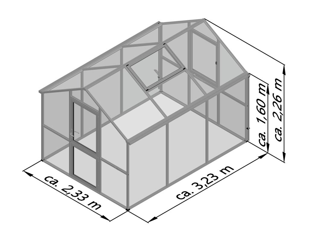 | ? Výška skleníku (zařazení do kategorie): | 2,3 m |