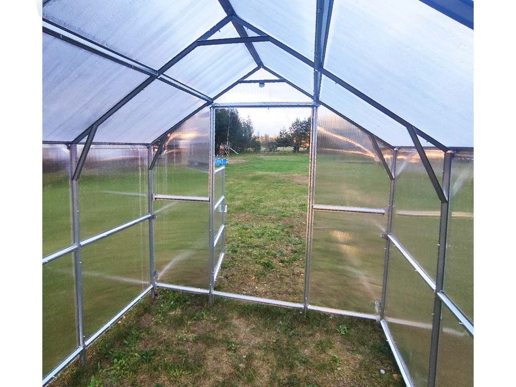Zahradní skleník LEGI RUBARB 8 x 2,35 m, 4 mm (Hranatá konstrukce) – konstrukce z ocel - pozinkované profily (síla profilu 1 mm) v barvě stříbrná.