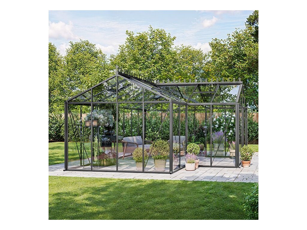 - Vysoká úroveň přizpůsobení: volba barev RAL, stylu dveří a řešení ventilace umožňuje přizpůsobit skleník podle vašich specifických potřeb a přání.