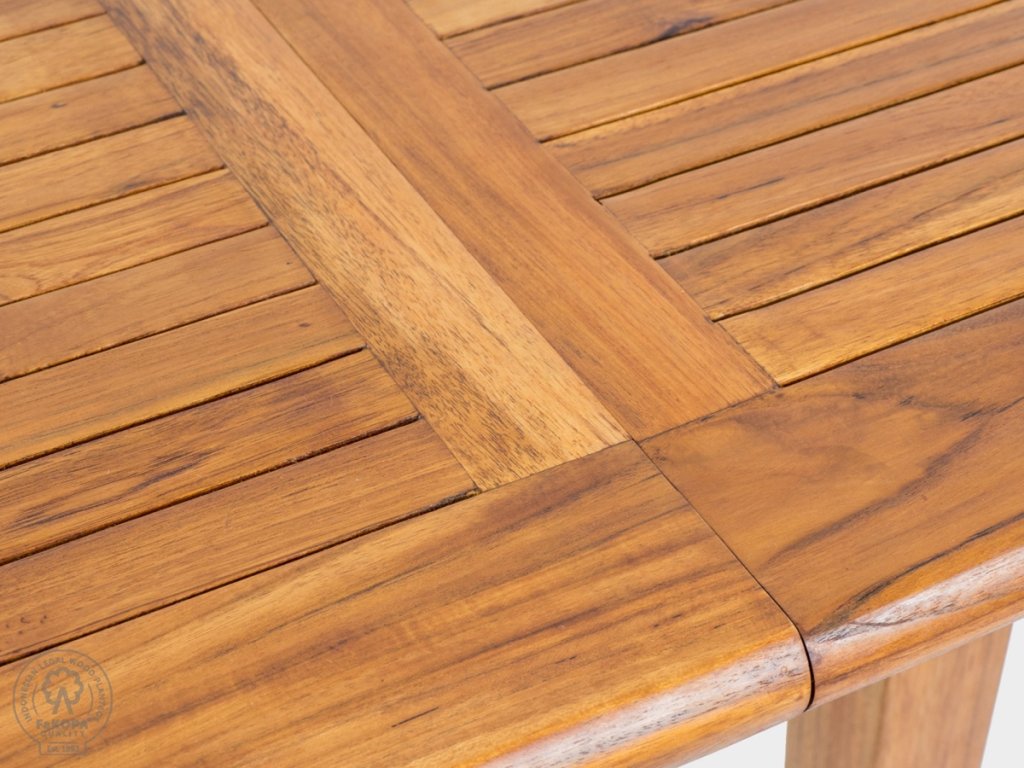 Masivní rozkládací stůl z kvalitního indonéského teaku je ideální pro venkovní použití. Teakové dřevo je velice odolné proti vnějším vlivům, nepříznivé počasí, déšť, UV záření ani plísně a škůdci nemají šanci.