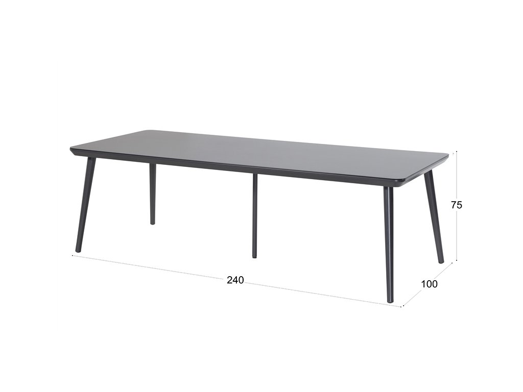 Zahradní jídelní stůl Hartman Sophie má konstrukci z pevného hliníku a vrchní desku z HPL materiálu v šedé barvě. Rozměr 240 x 100 x 75 cm.